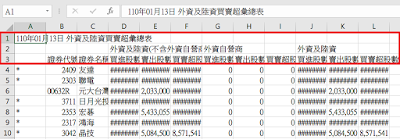 我們可以發現三大法人的資料有很多列,但是我們只需要證券代號以及買賣超股數,我們還需要對csv做處理才能讀進python的陣列,因此: